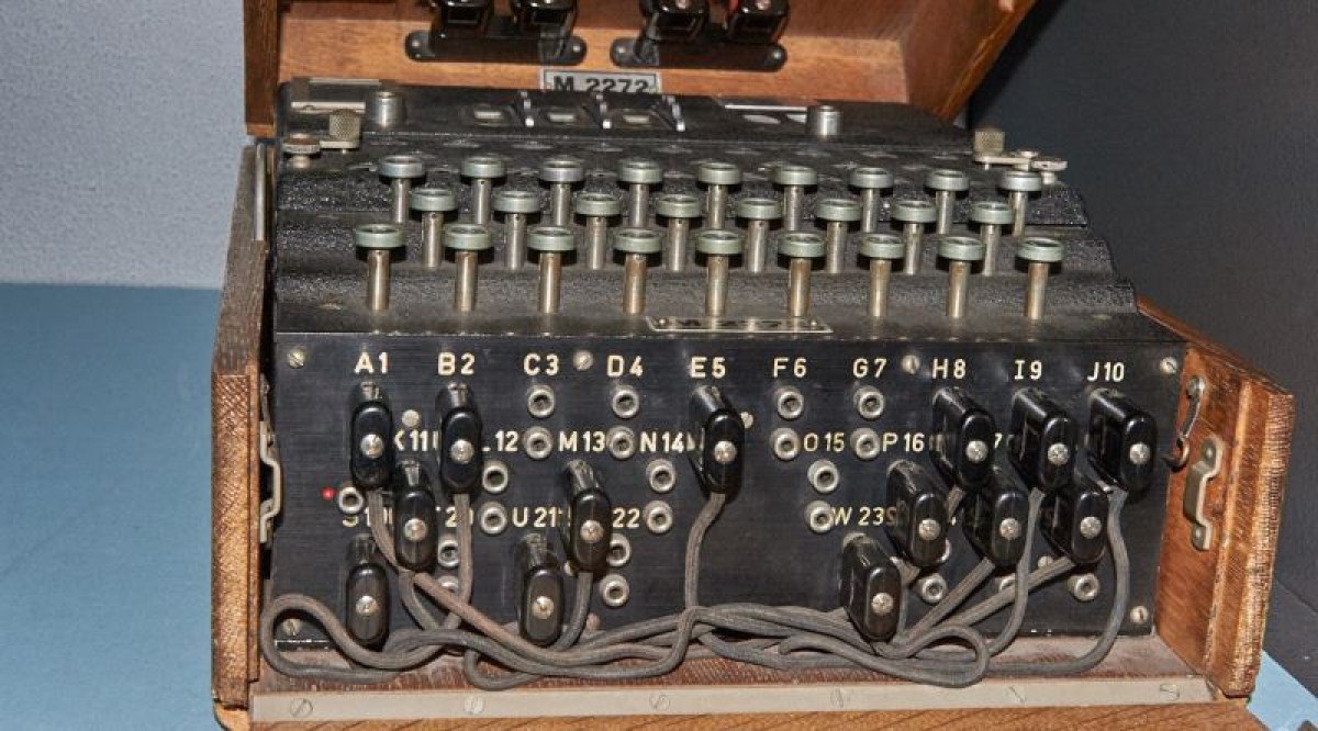 Enigma makinesi, daktiloya benzeyen, her biri 26 pozisyonlu üç rotoru, bir reflektörü ve harf çiftlerini değiştirmek için bir bağlantı panosu bulunan karmaşık bir elektromekanik cihazdı.