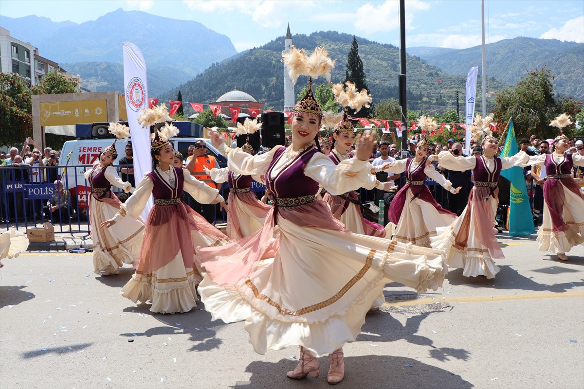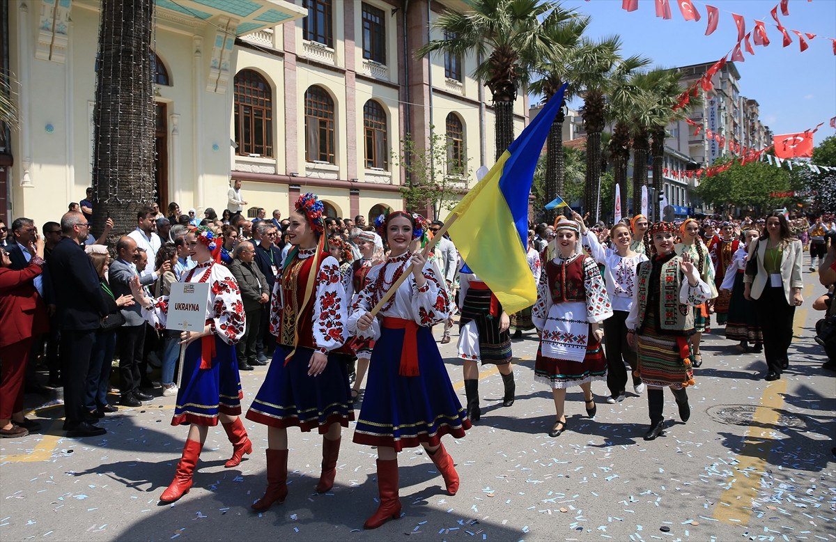 Öte yandan, kortej boyunca Türk ve yabancı halk oyunları ekipleri, gösteriler sundu.